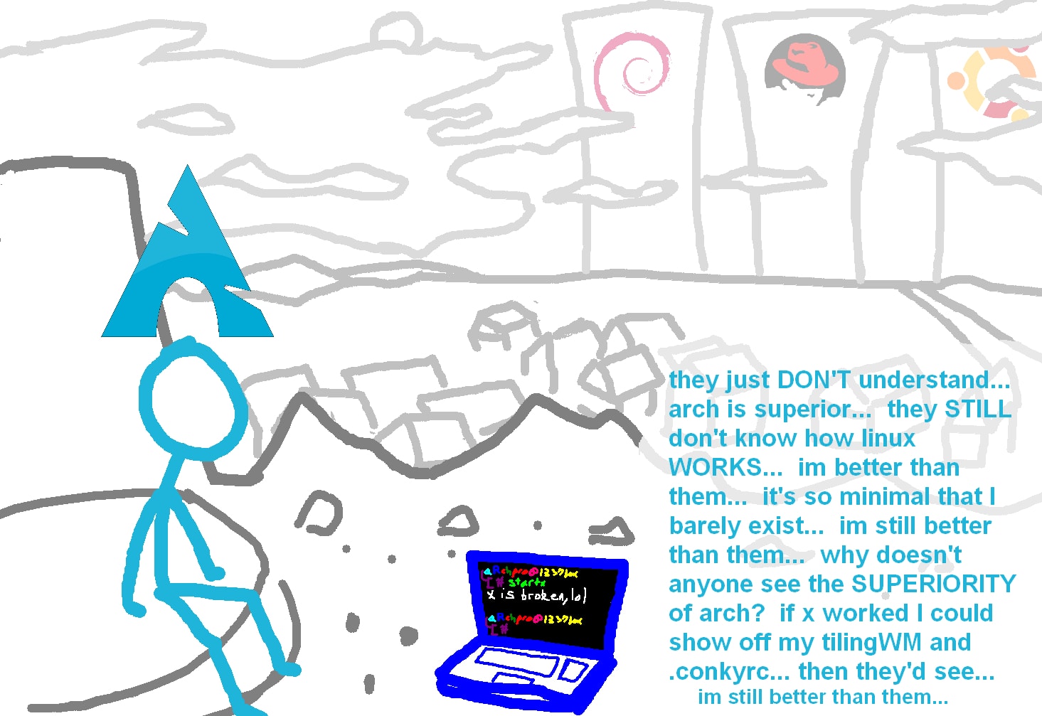 Hầu hết những bạn chưa có kinh nghiệm với Linux đều gặp khó khăn khi mới bắt đầu sử dụng ArchLinux. Lý do thật đơn giản: phần cài đặt của ArchLinux chỉ giúp xây dựng nên một số yếu tố cơ bản trên máy, còn rất nhiều việc khác người dùng phải tự làm. Đó là chưa kể trong quá trình cài đặt, người dùng phải hiểu khá cặn kẽ một số vấn đề thuần túy kỹ thuật. ArchLinux chỉ làm rất ít việc, và nó tạo cơ hội để bạn xây dựng dấu ấn cá nhân trên chính máy tính của mình.Để hình dung, hãy thử so sánh khi bạn đi ăn tiệc ở một nhà hàng với lúc bạn phải lăn vào bếp để nấu món canh chua. Nếu bạn chỉ muốn thưởng thức, giao lưu, gặp gỡ, đi tiệc sẽ thích hợp hơn. Còn việc bắt tay xào nấu một món gì đó, trừ khi bị bắt buộc phải làm, sẽ cho bạn những niềm vui và am hiểu hoàn toàn khác.
